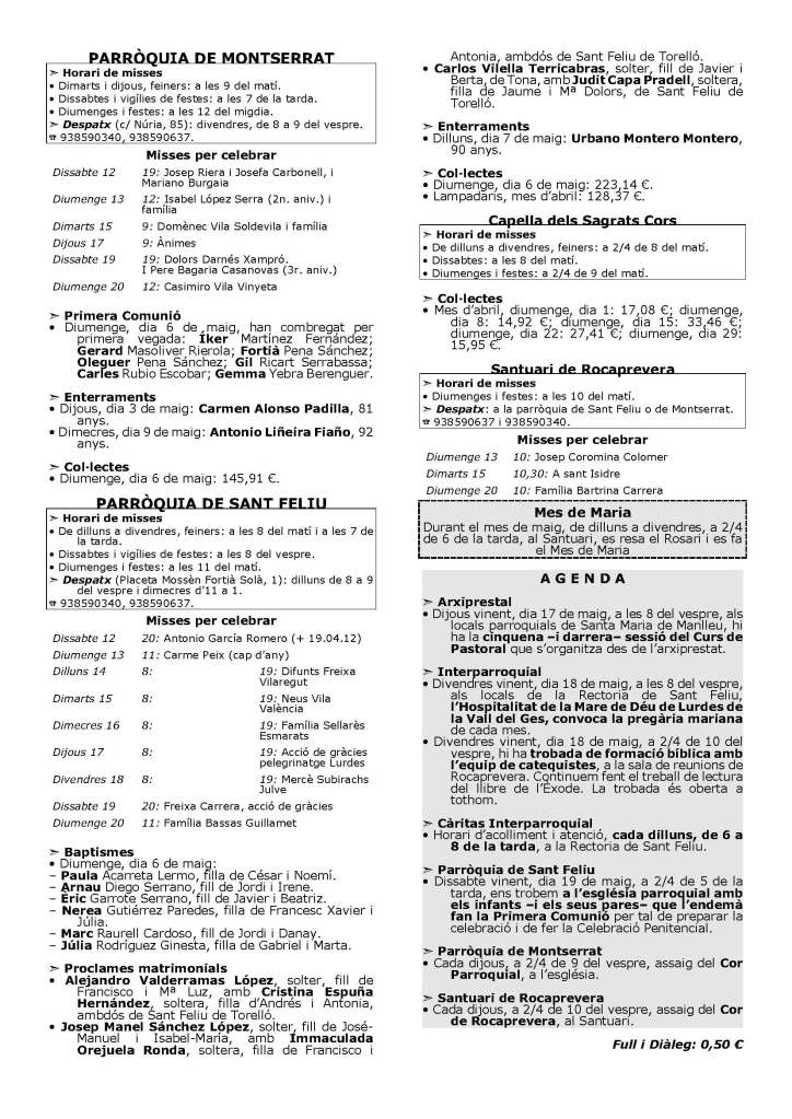 Aquest és el Diàleg del diumenge, dia 13 de maig del 2012, en imatge i en format pdf per si us el voleu descarregar.
