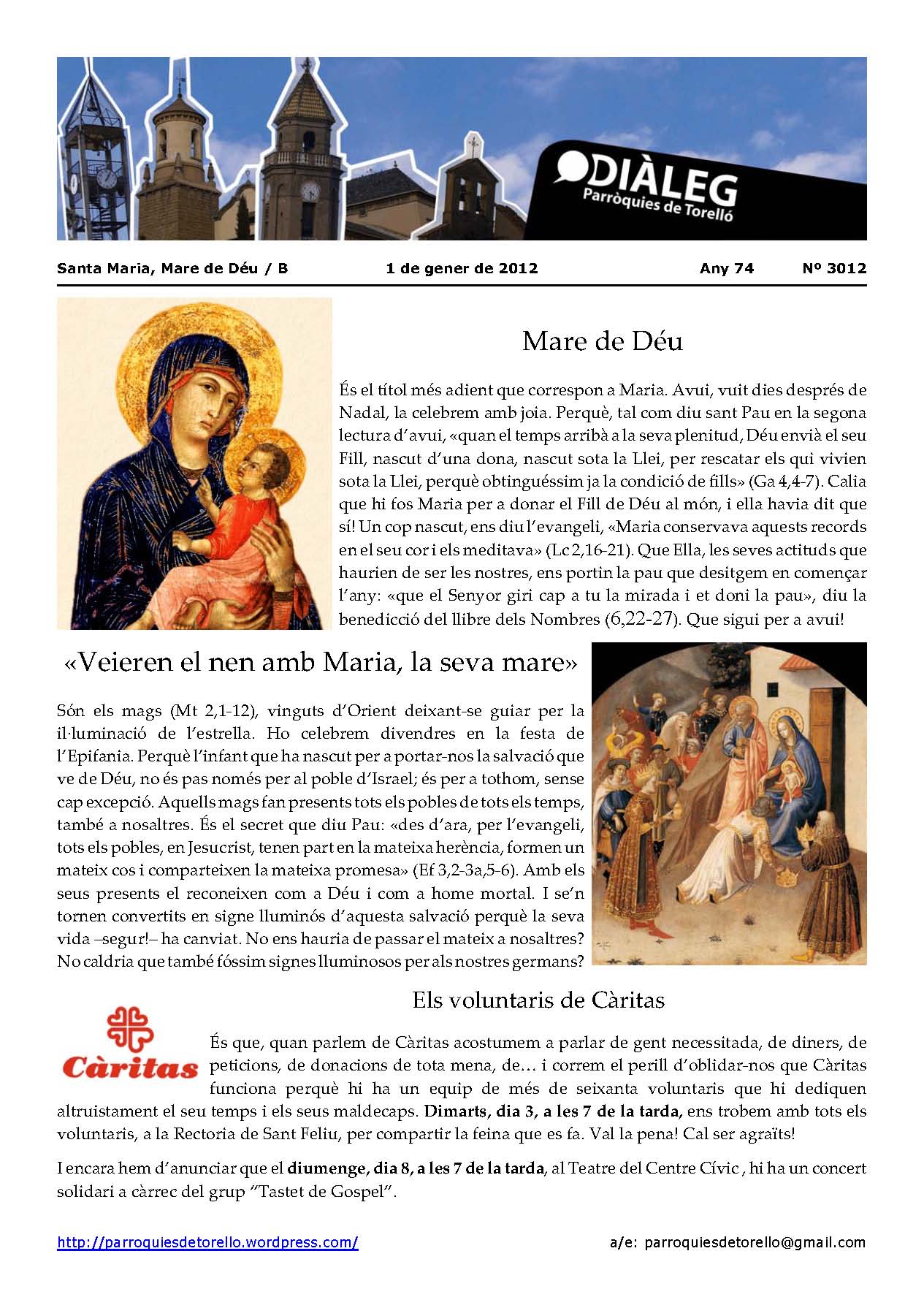 Aquest és el Diàleg del diumenge, dia 1 de gener del 2012, dia de Cap d’Any. Teniu l’enllaç en pdf i en imatge.