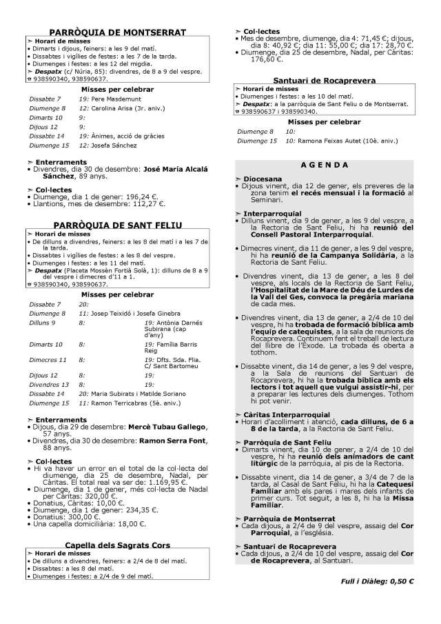 - Reunió de Càritas a les 9h30 a la Rectoria 14 gener 2026