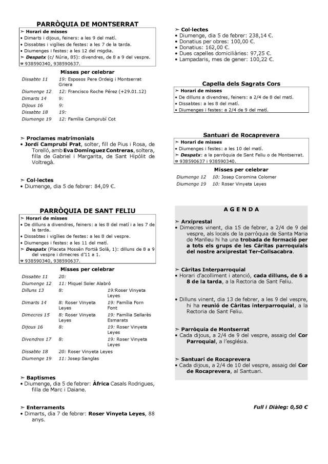 Agenda de les Parròquies de Torelló