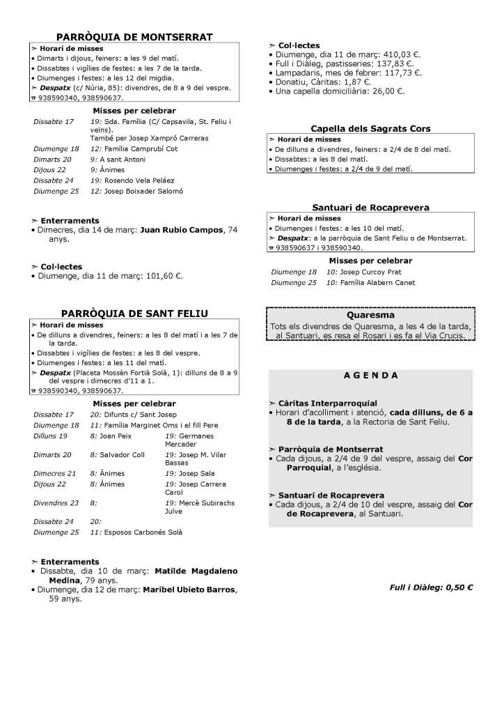 - Reunió de Càritas a les 9h30 a la Rectoria 11 febrer 2026