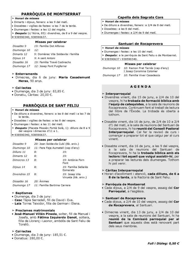 Agenda de les Parròquies de Torelló