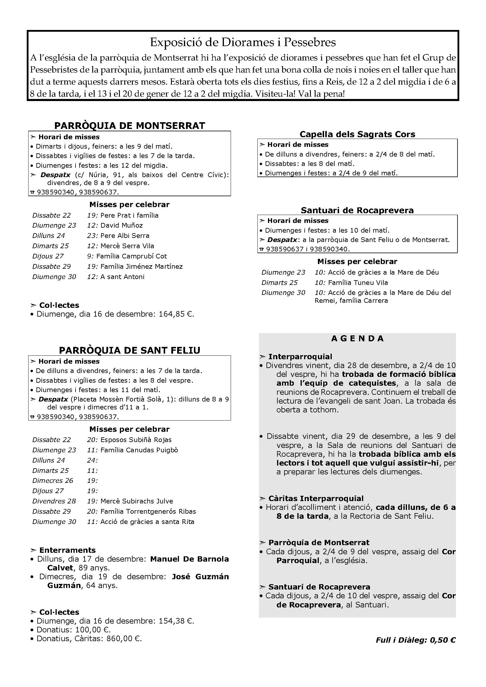 - A les 20: Missa anticipada a Sant Feliu 27 Desembre 2025