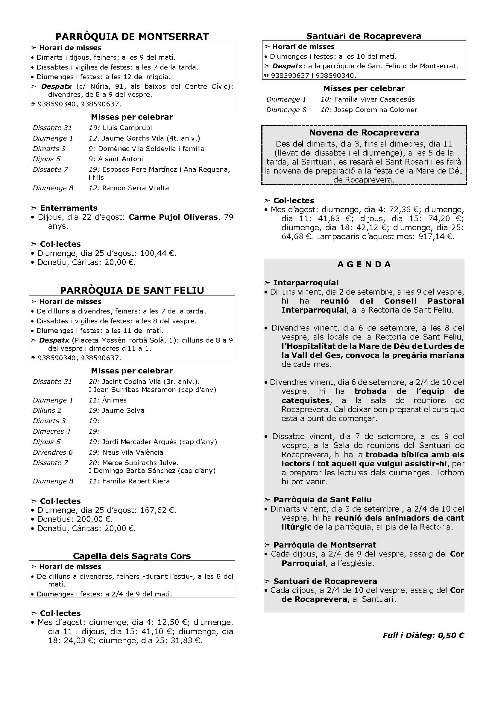 - Missa del Gall a Sant Feliu a les 19h00 24 Desembre 2025