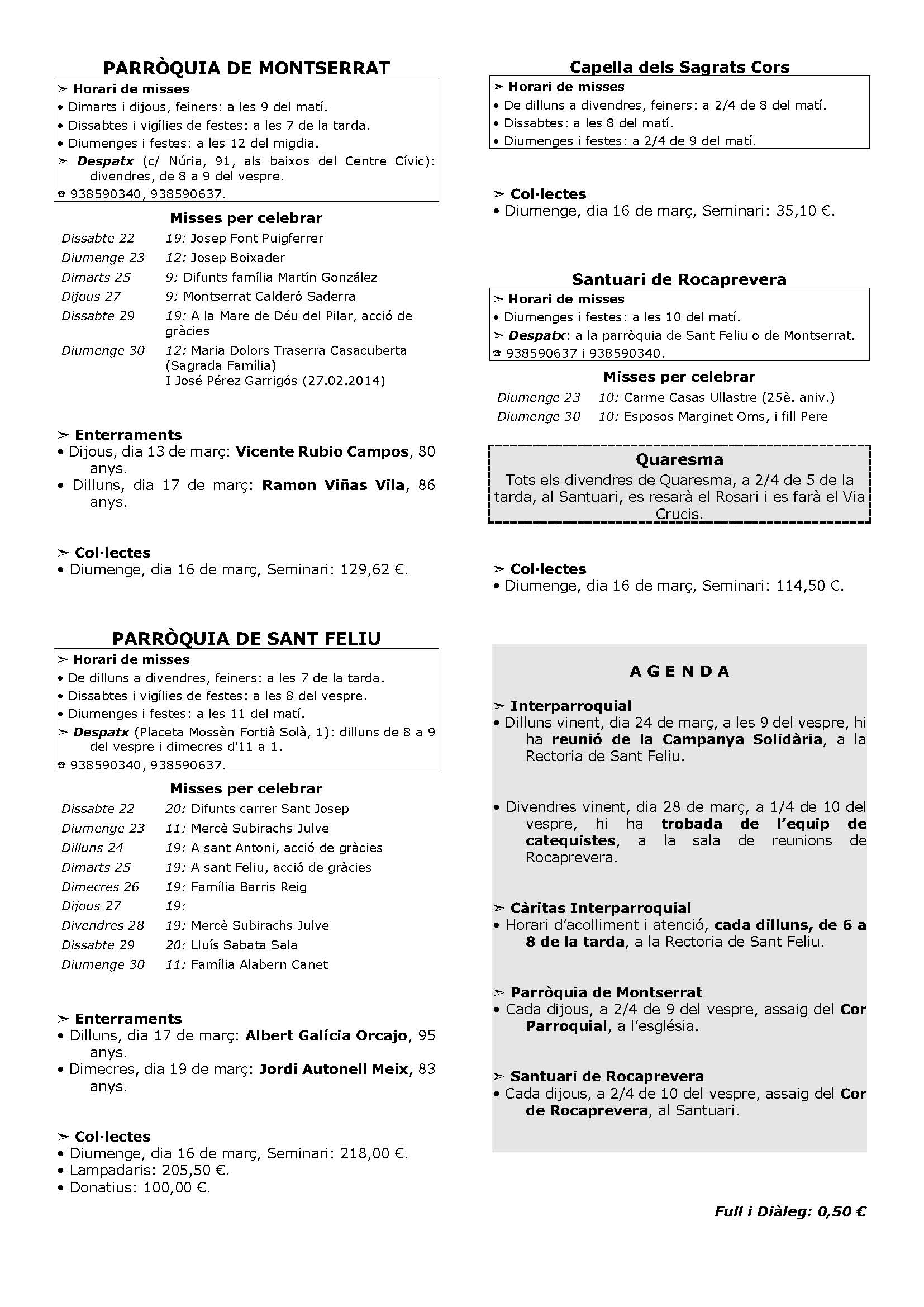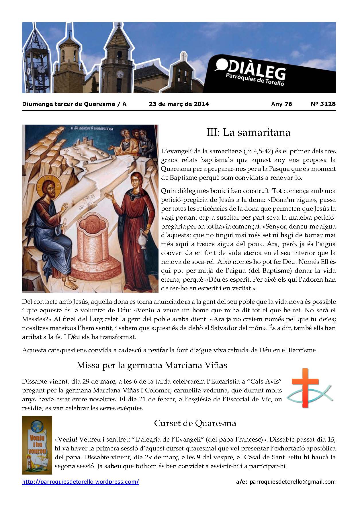 Aquest és el Diàleg del diumenge, dia 23 de març del 2014, en imatge i en format pdf per si us el voleu descarregar.
