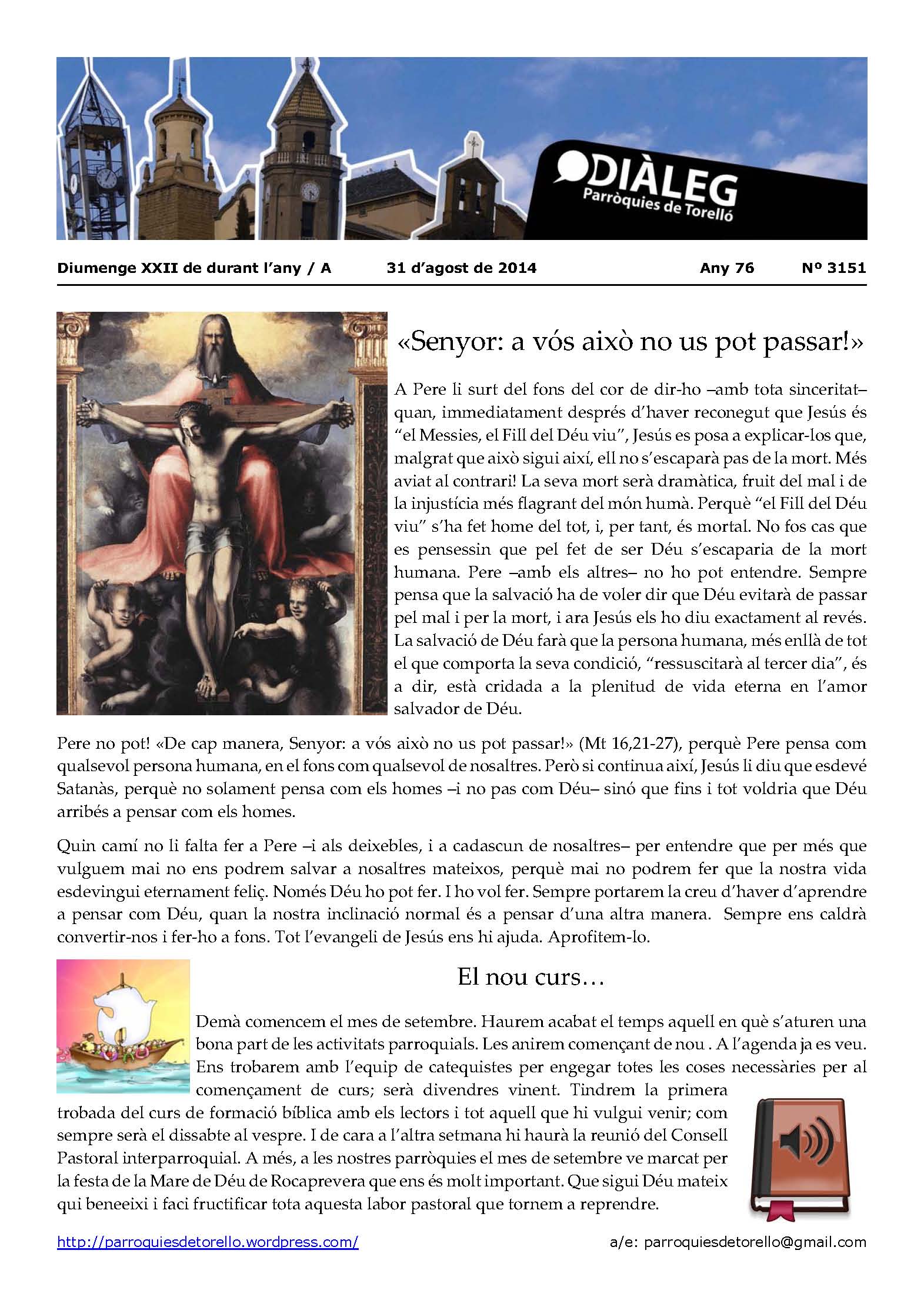 Aquest és el Diàleg del diumenge, dia 31 d’agost del 2014, en imatge i en format pdf per si us el voleu descarregar.