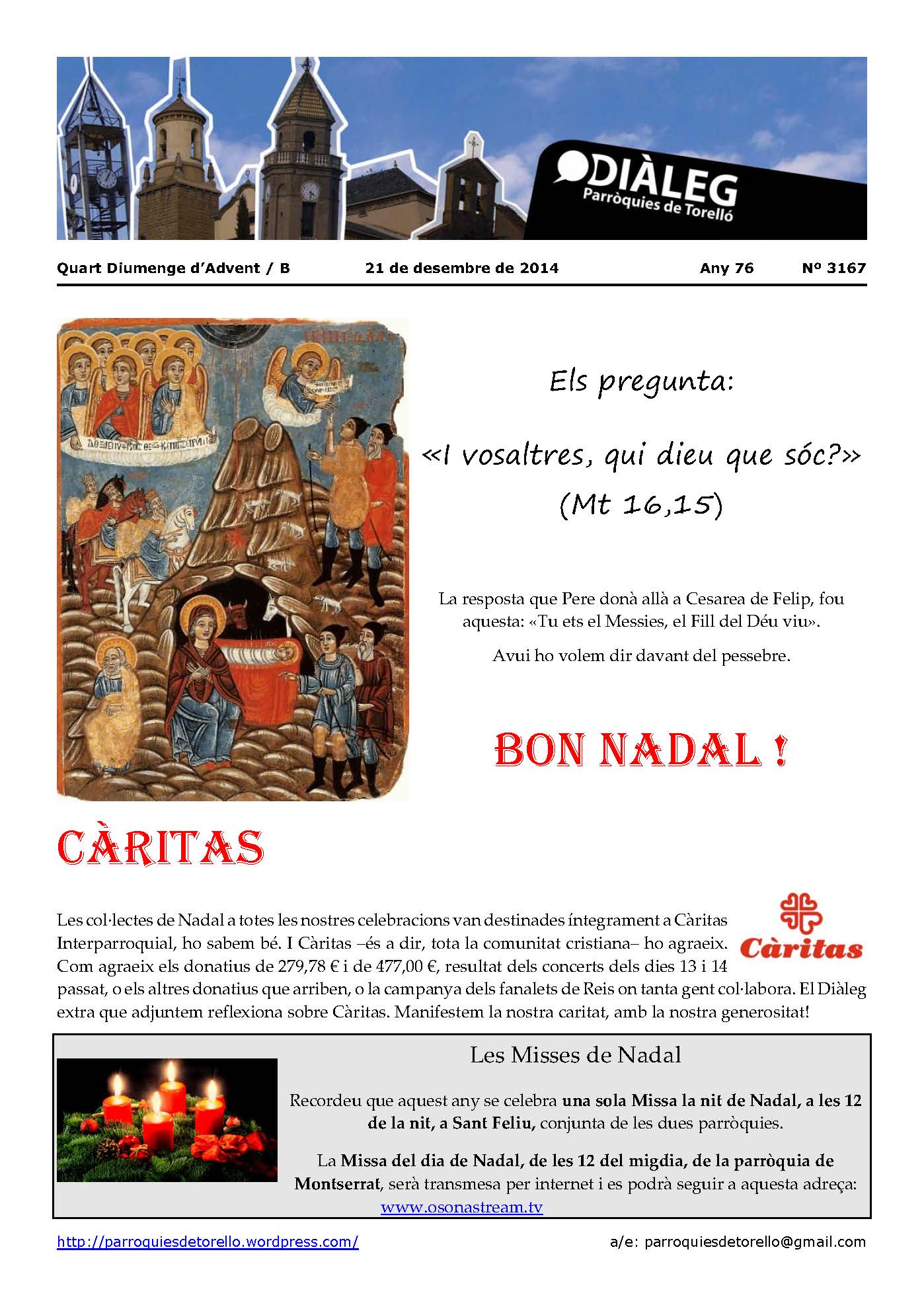 Aquest és el Diàleg del diumenge, dia 21 de desembre del 2014, en imatge i en format pdf per si us el voleu descarregar.