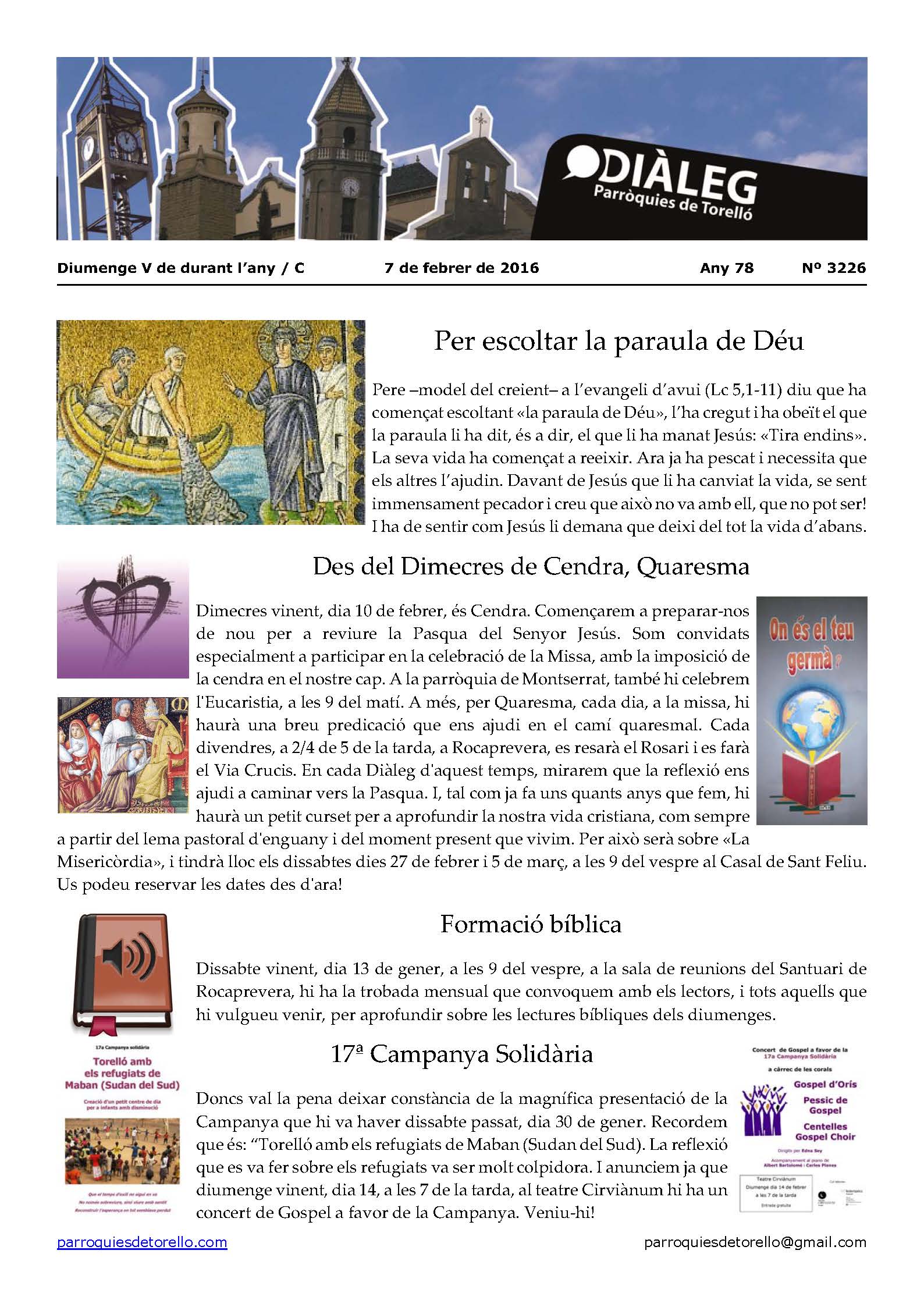 Aquest és el Diàleg del diumenge, dia 7 de febrer del 2016, en imatge i en format pdf per si us el voleu descarregar.