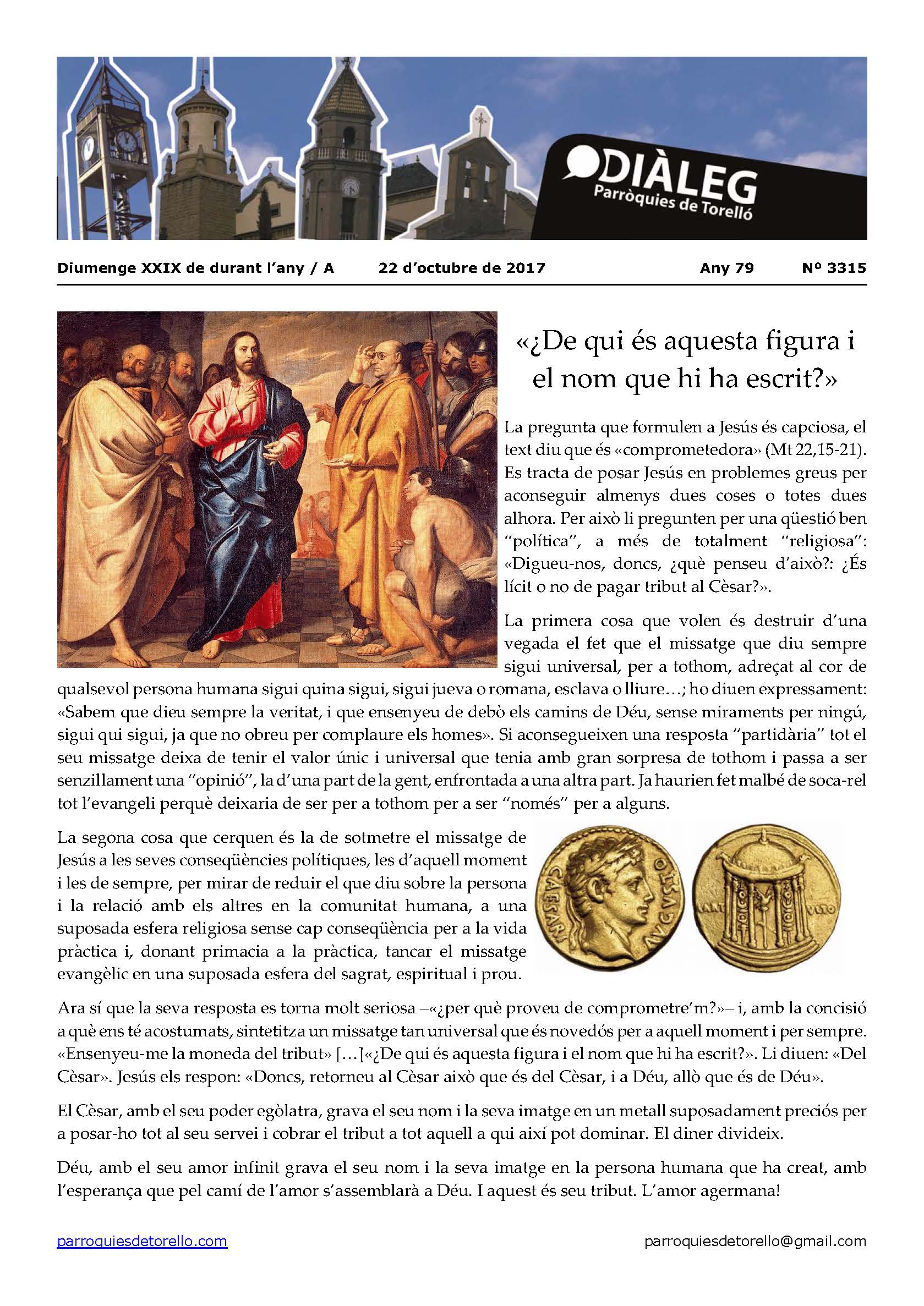 Aquest és el Diàleg del diumenge, dia 22 d’octubre del 2017, en imatge i en format pdf per si us el voleu descarregar.