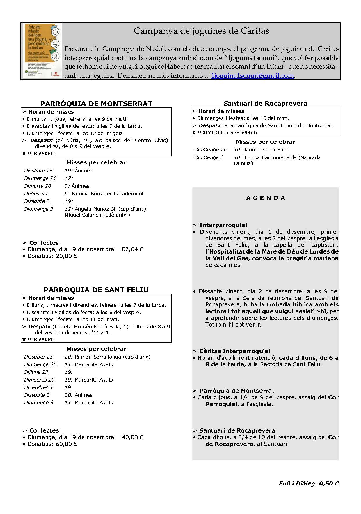 - A les 19: Missa anticipade a Montserrat 27 Desembre 2025
