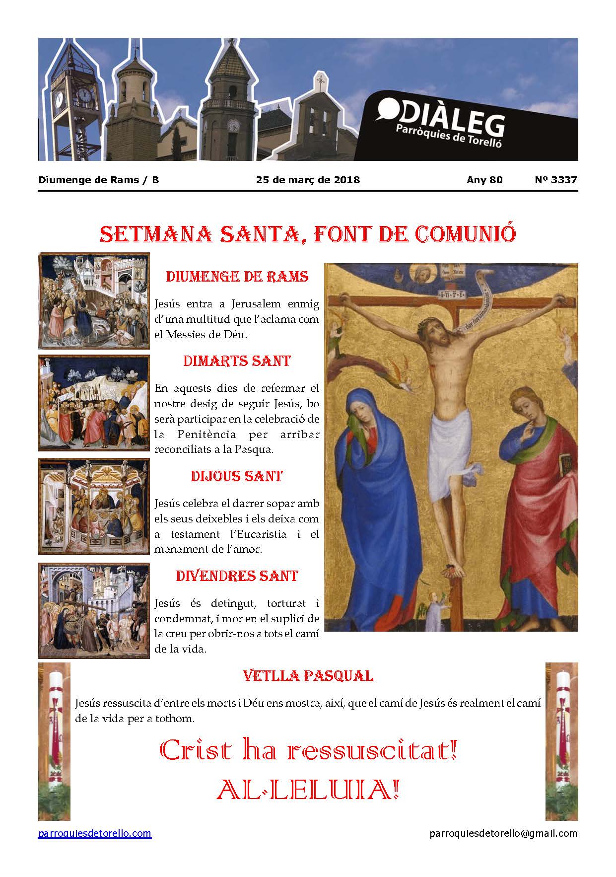 Aquest és el Diàleg del diumenge, dia 25 de març del 2018, en imatge i en format pdf per si us el voleu descarregar.