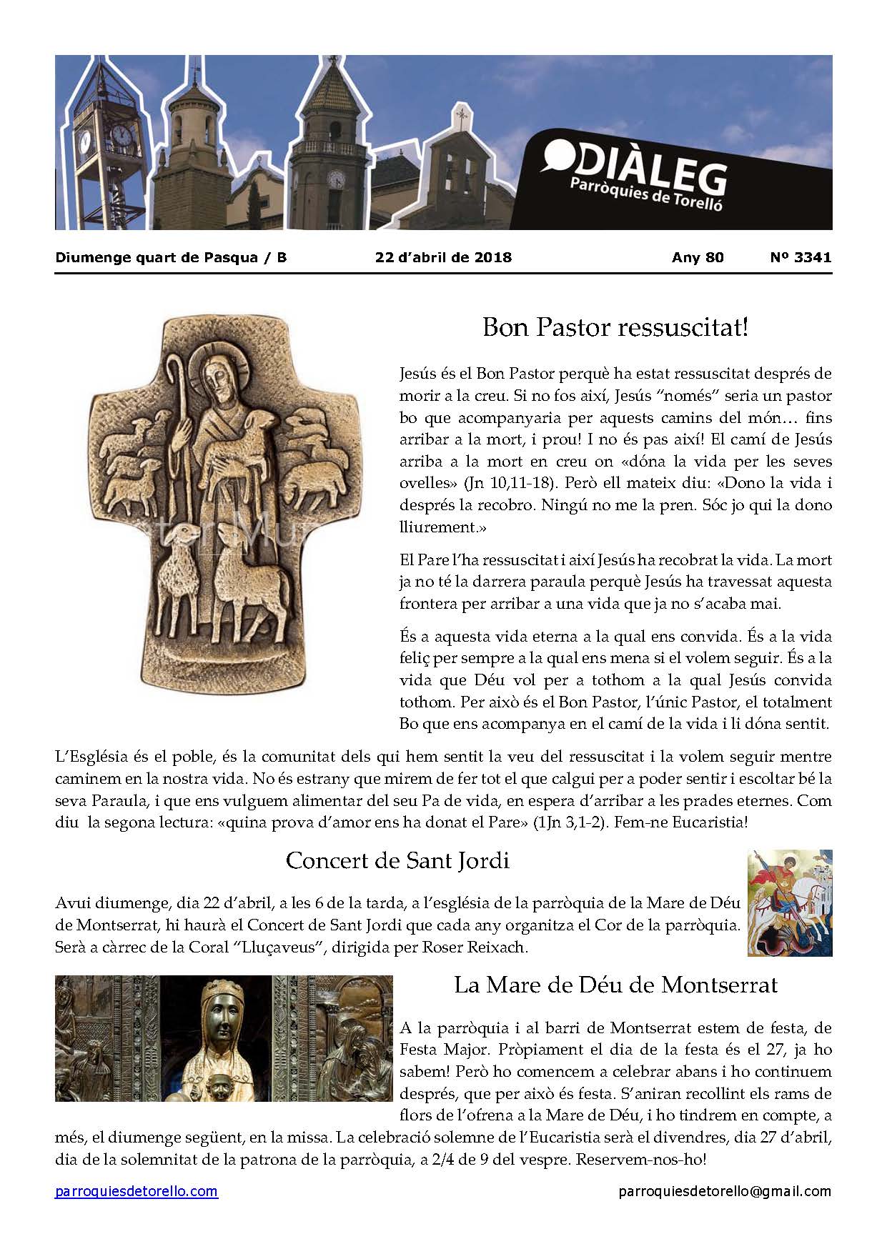 Aquest és el Diàleg del diumenge, dia 22 d’abril del 2018, en imatge i en format pdf per si us el voleu descarregar.