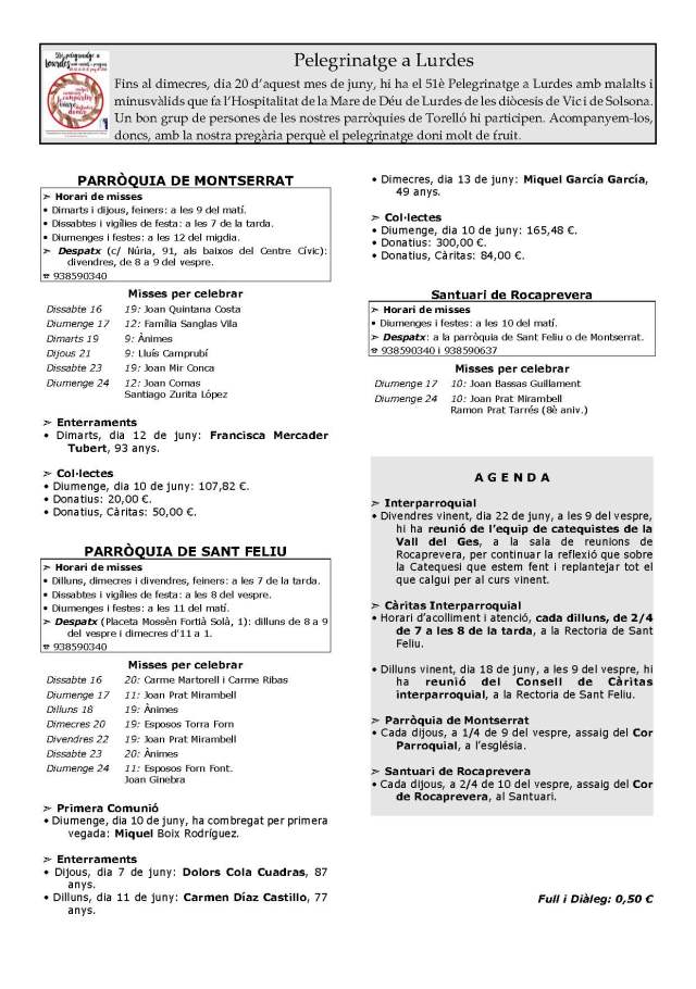 Agenda de les Parròquies de Torelló