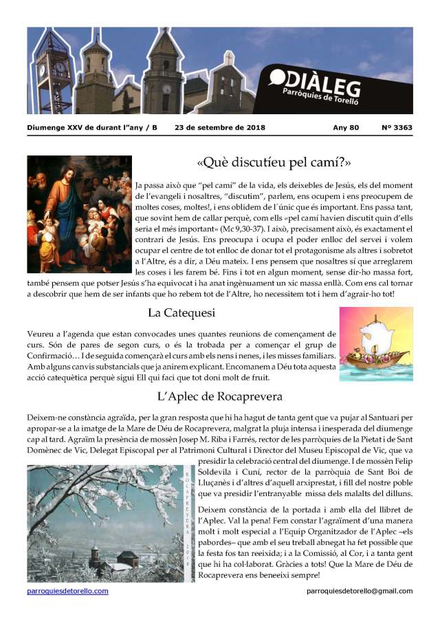 Aquest és el Diàleg del diumenge, dia 23 de setembre del 2018, en imatge i en format pdf per si us el voleu descarregar.