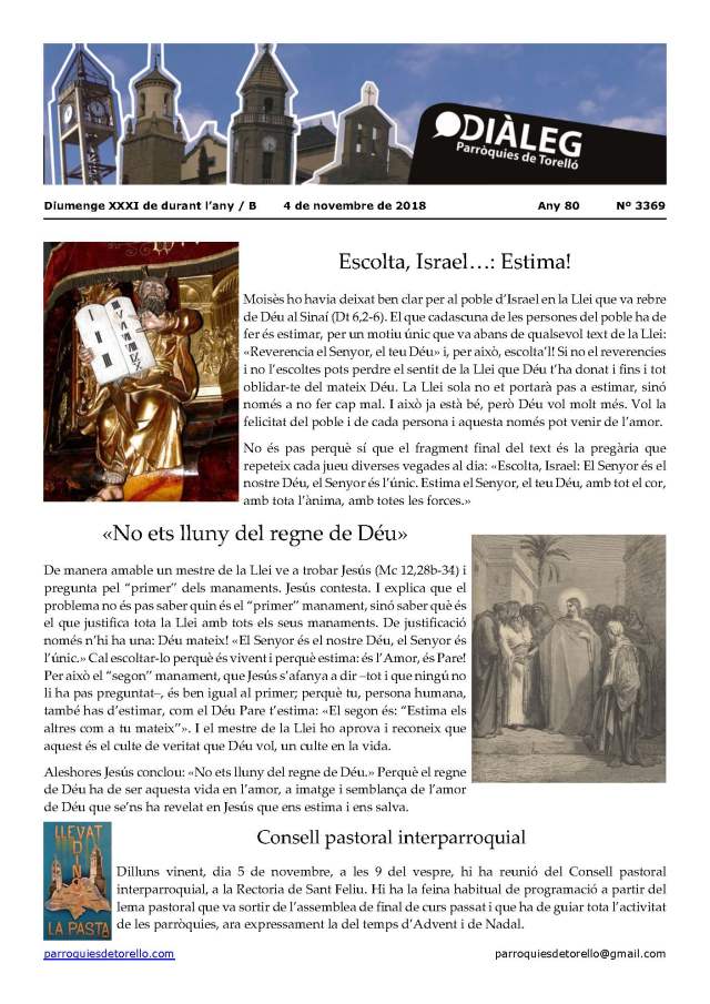 Aquest és el Diàleg del diumenge, dia 4 de novembre del 2018, en imatge i en format pdf per si us el voleu descarregar.