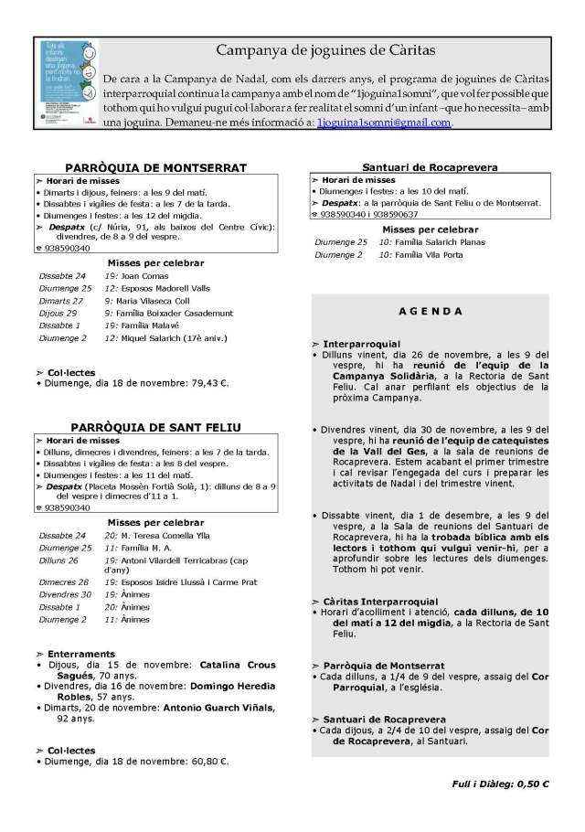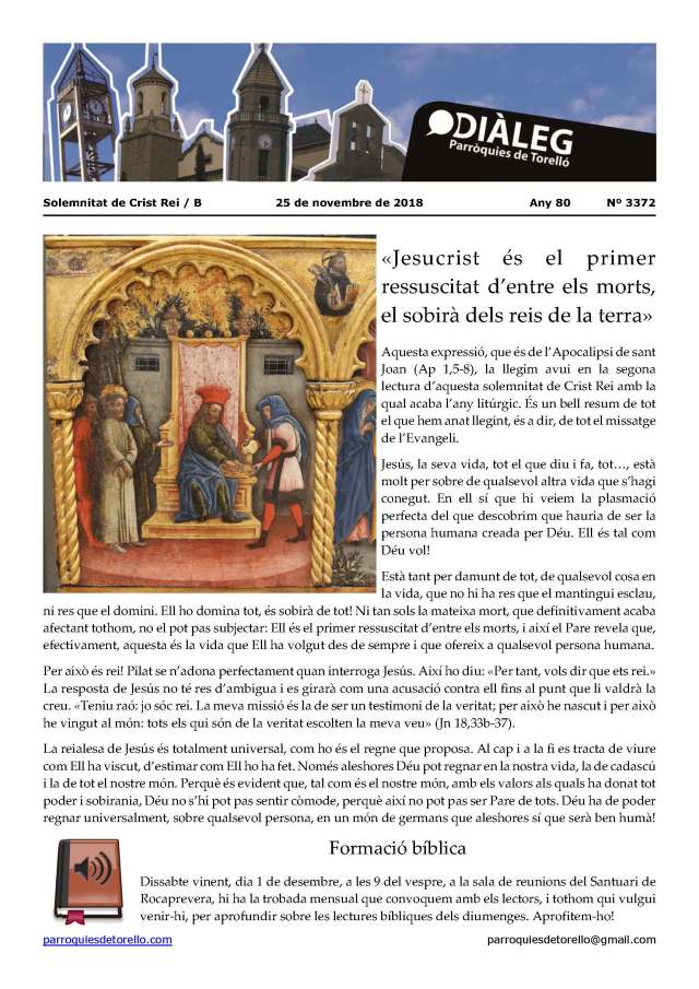 Aquest és el Diàleg del diumenge, dia 25 de novembre del 2018, en imatge i en format pdf per si us el voleu descarregar.
