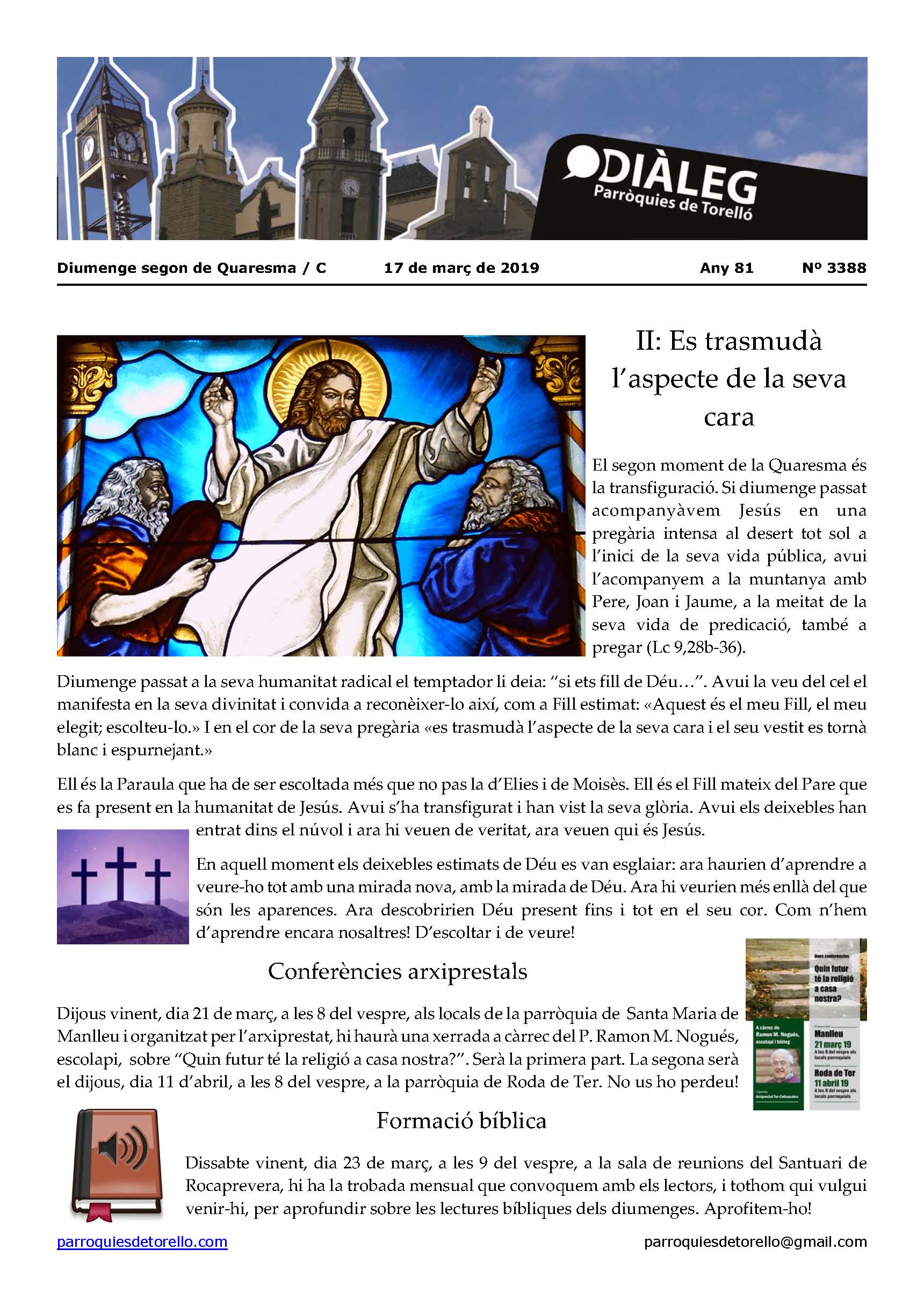 Aquest és el Diàleg del diumenge, dia 17 de març del 2019, en imatge i en format pdf per si us el voleu descarregar.