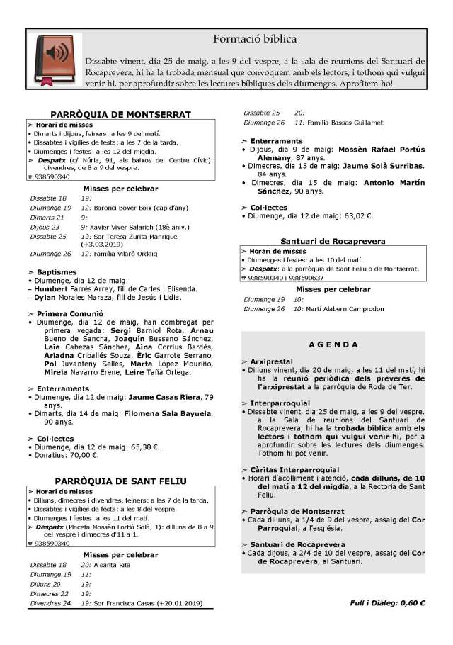 Aquest és el Diàleg del diumenge, dia 19 de maig del 2019, en imatge i en format pdf per si us el voleu descarregar.