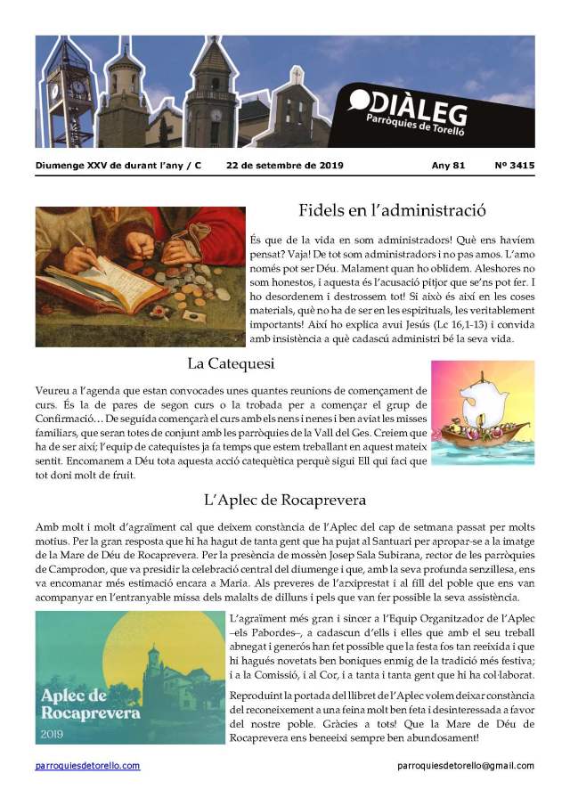 Aquest és el Diàleg del diumenge, dia 22 de setembre del 2019, en imatge i en format pdf per si us el voleu descarregar.