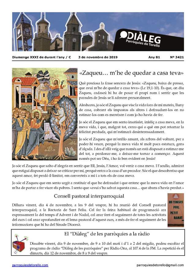 Aquest és el Diàleg del diumenge, dia 3 de novembre del 2019, en imatge i en format pdf per si us el voleu descarregar.
