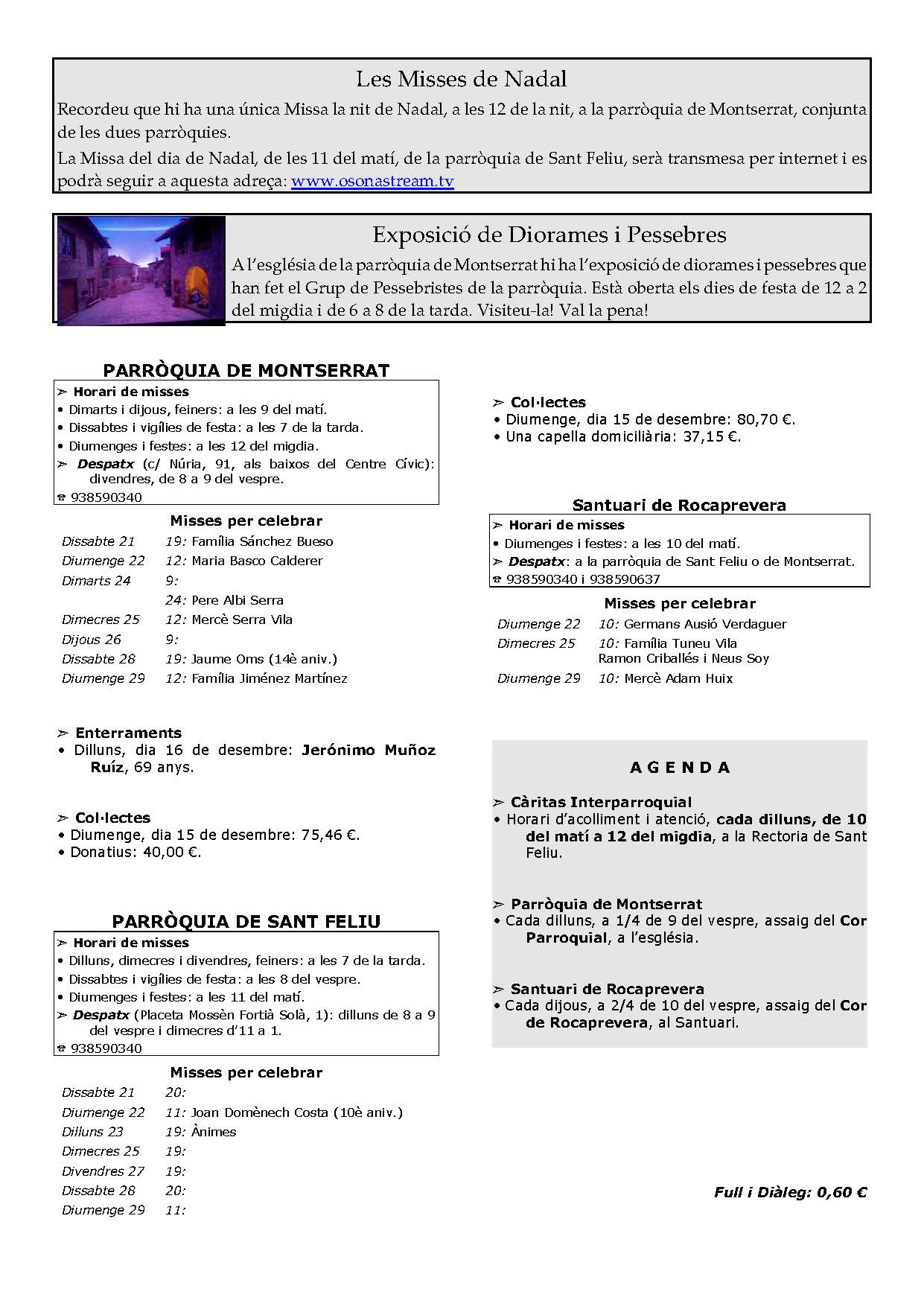 - A les 11h30: Reunió d'arxiprestat a Sant Pere de Torello 23 Desembre 2025