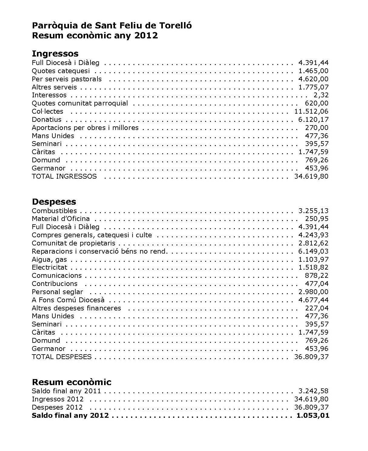 - Tal com es pot veure la parròquia no té altres ingressos que els qui hi figuren: col·lectes, donatius, serveis…