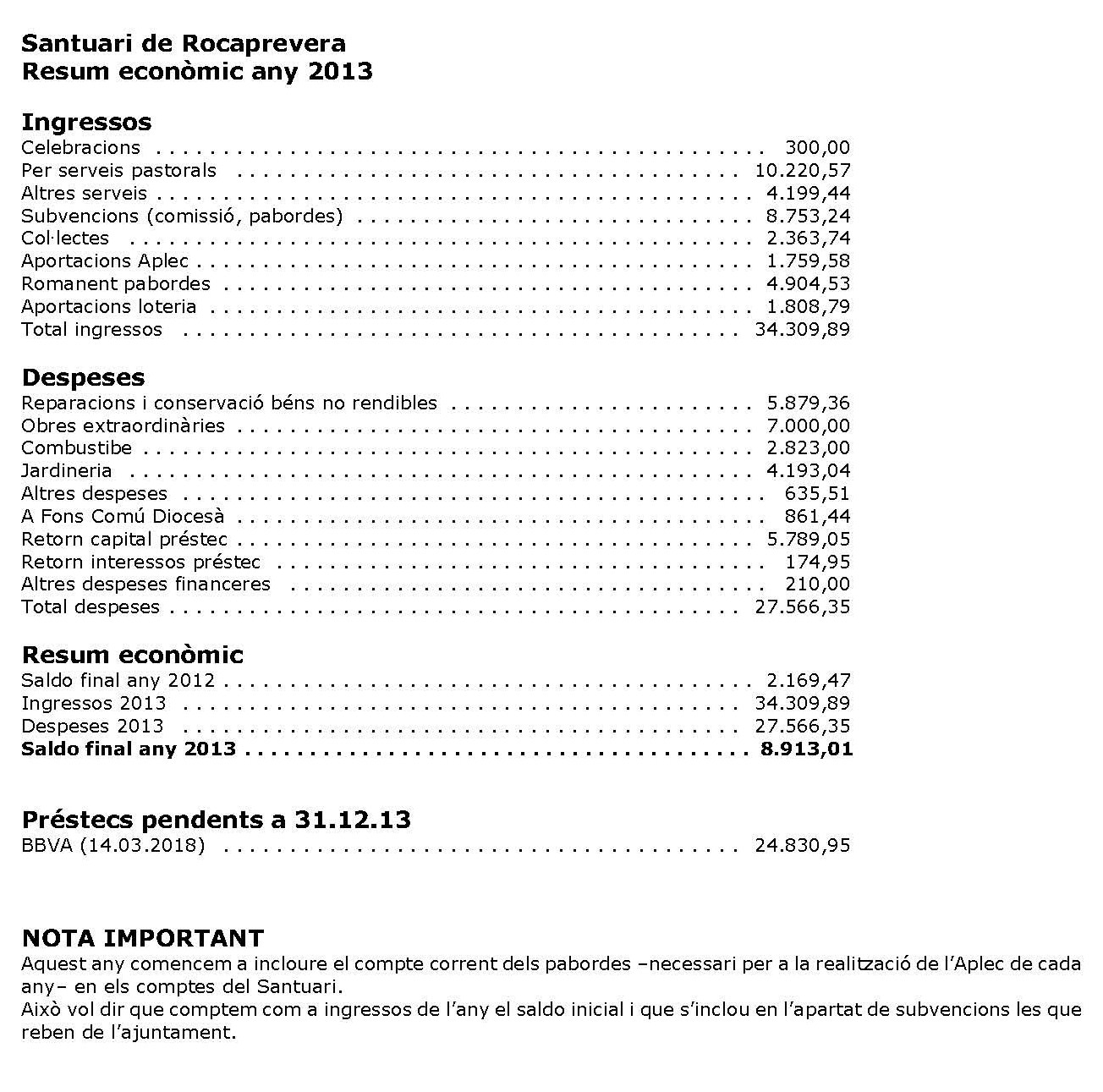 tes del Santuari de Rocaprevera a 31 de desembre de 2013.
