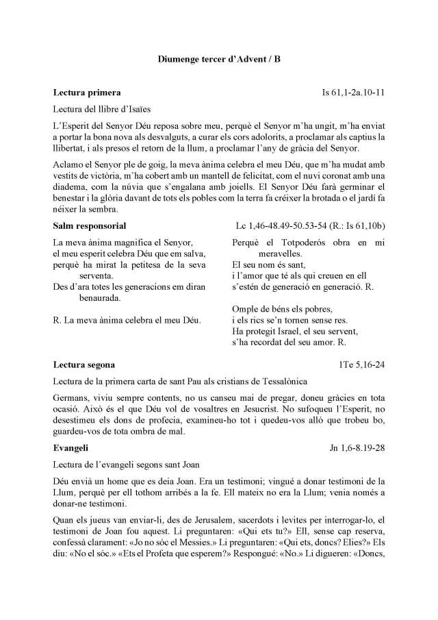 2017.12.17 – Lectures del diumenge tercer d’Advent B – 17 de desembre de 2017
