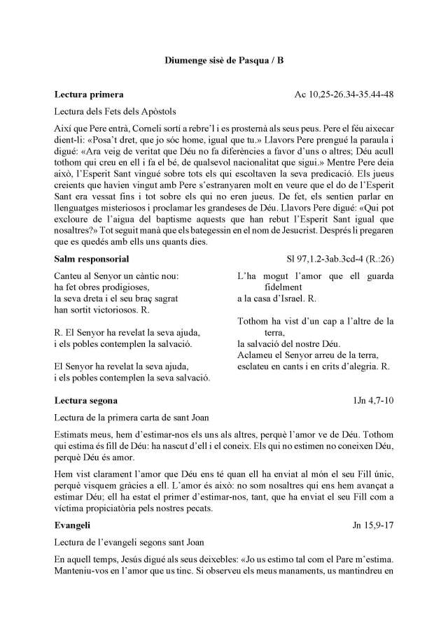 Diumenge Pasqua 6 B
