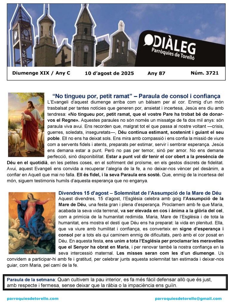 Divendres dia 1 d’agost, festa de Sant Feliu, el patró de la parròquia i del nostre poble. És Festa Major.
